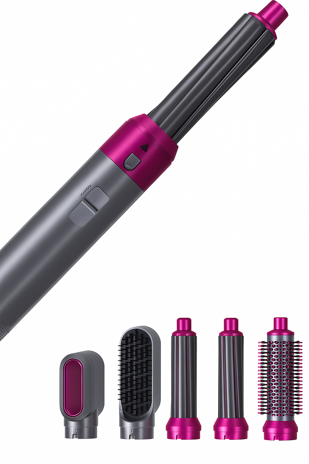 - 🎭 5 Interchangeable Attachments for Unlimited Styling – Includes a hairdryer, straightening brush, curling wand, crimper, and volumizing comb, allowing you to effortlessly achieve salon-quality styles at home.